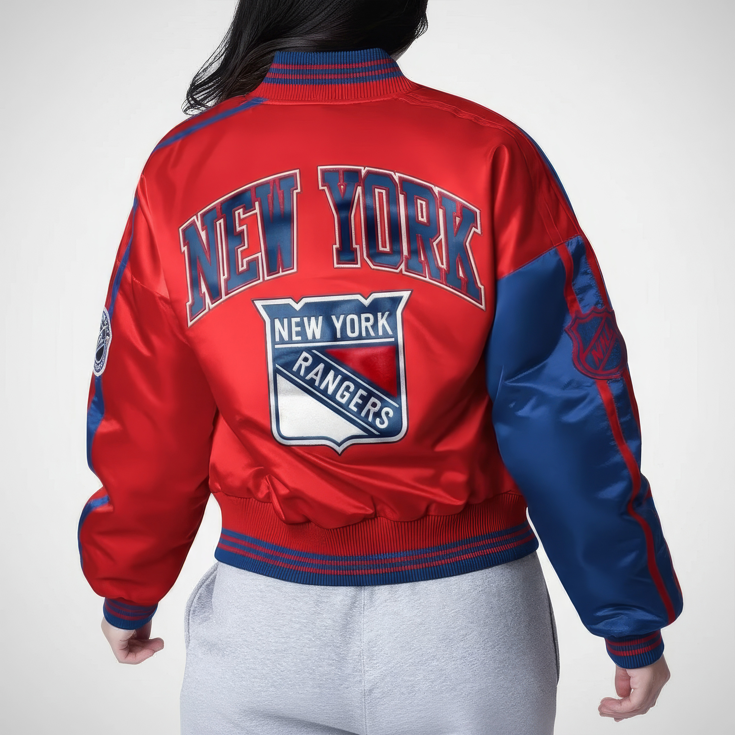 Bring bold energy and modern street style to your wardrobe with the National Hockey League 2026 New York Rangers Zone Blitz Cropped Satin Varsity Jacket. Designed for fans who love fashion as much as hockey, this jacket blends classic NHL varsity aesthetics with a trendy cropped silhouette.